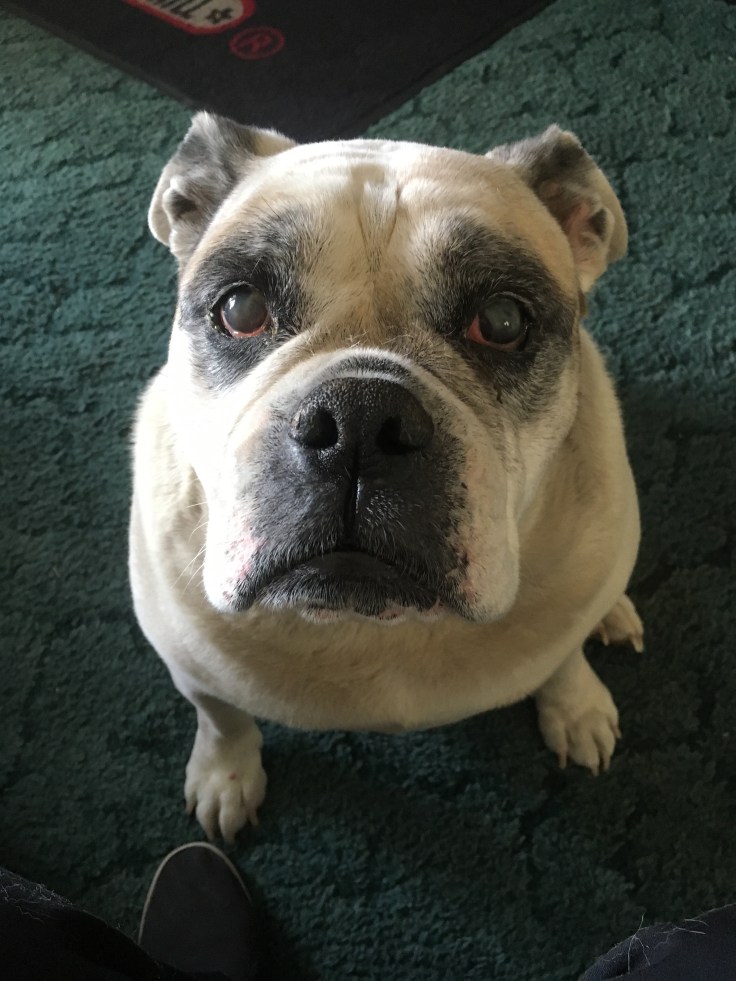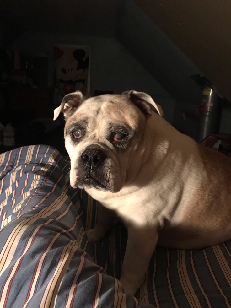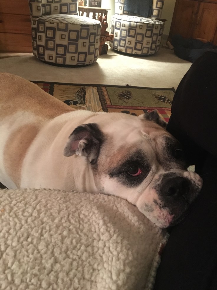 I don’t want to get into too many details with her health as she was actually a fairly healthy bulldog. I had read they are extremely expensive to own as they have a lot of health issues due to overbreeding. My Jessie was fairly healthy her whole life, no major catastrophes in her life, she did develop a couple lumps on her body in her early life but I had them removed and only one was biopsied as malignant years ago and they never grew back. She developed the cataracts a few years ago and that is common in all senior dogs and she was able to get around just as good as before she had them. She was stiff and sore on cold mornings as most seniors are, dogs or people! It happens to all of us at some point!