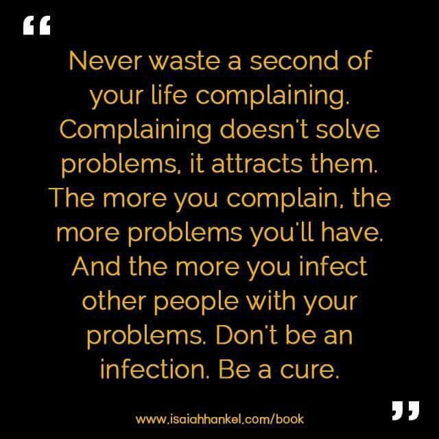 Hey, don’t forget you get what you focus on the most. Don’t be terribly shocked when your life doesn’t improve if all you do is complain about the behavior of others. Take a step back and make sure you are not doing all those things you so actively complain about.