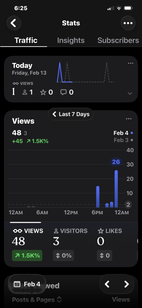Last week I received a notification from my blog about getting a lot of traffic, I have never gotten one before so I decided to look and see which post was going bonkers. Once I opened up the site I saw that it wasn’t a specific post it was my entire site. Someone had read every single post I had written and I thought immediately it was my dad. I knew it was him and he was feeling bad about his life and wanted to connect with me the only way he knew how, from a distance.